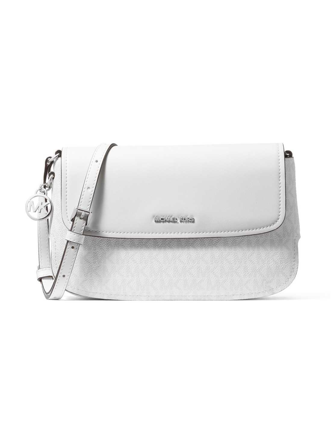 Borsa a tracolla Michael Kors in tela rivestita con stampa logo. Chiusura con patta e bottone a pressione.