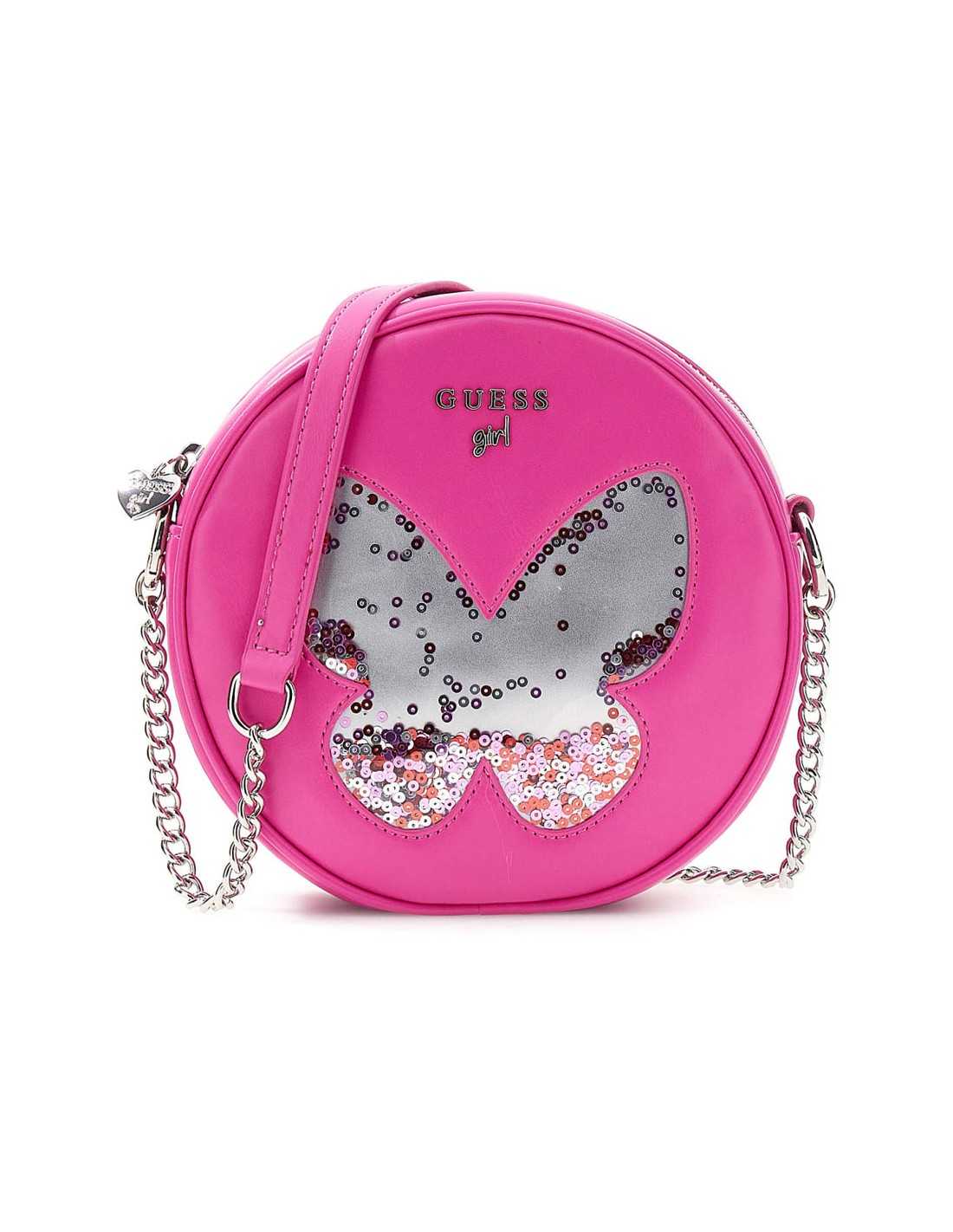 Tracollina Guess della linea Girl in similpelle con tracolla a catena e inserto in similpelle. Chiusura con cerniera.