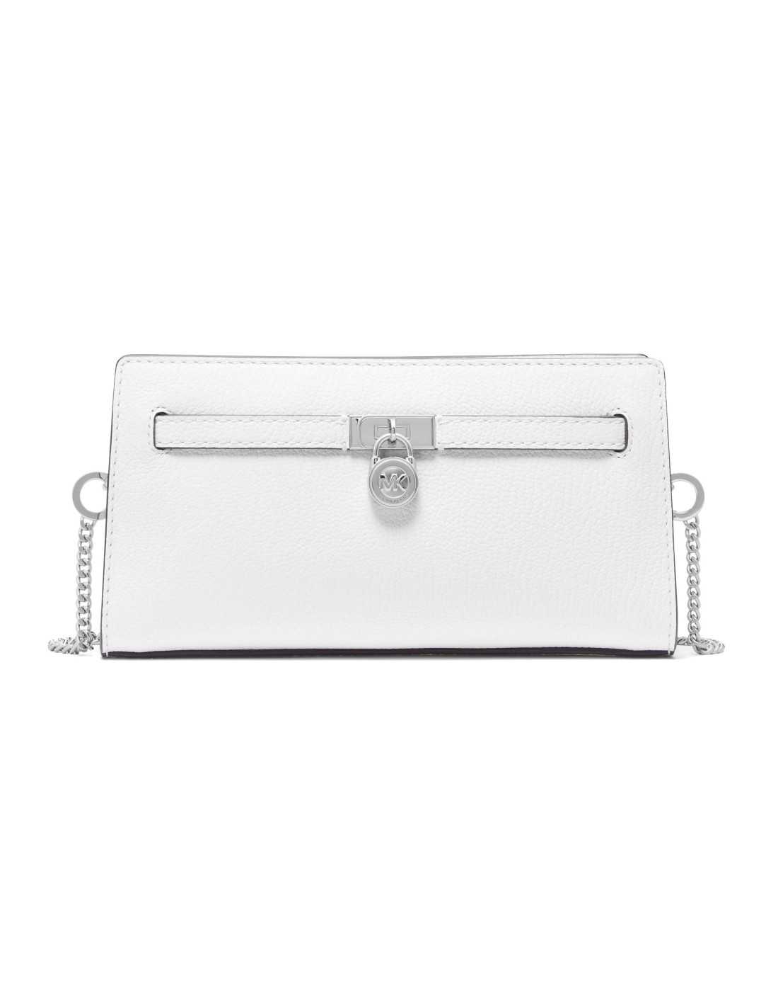Tracollina Michael Kors della linea Hamilton Moderne in pelle con chiusura a zip e tracolla regolabile a catena.
