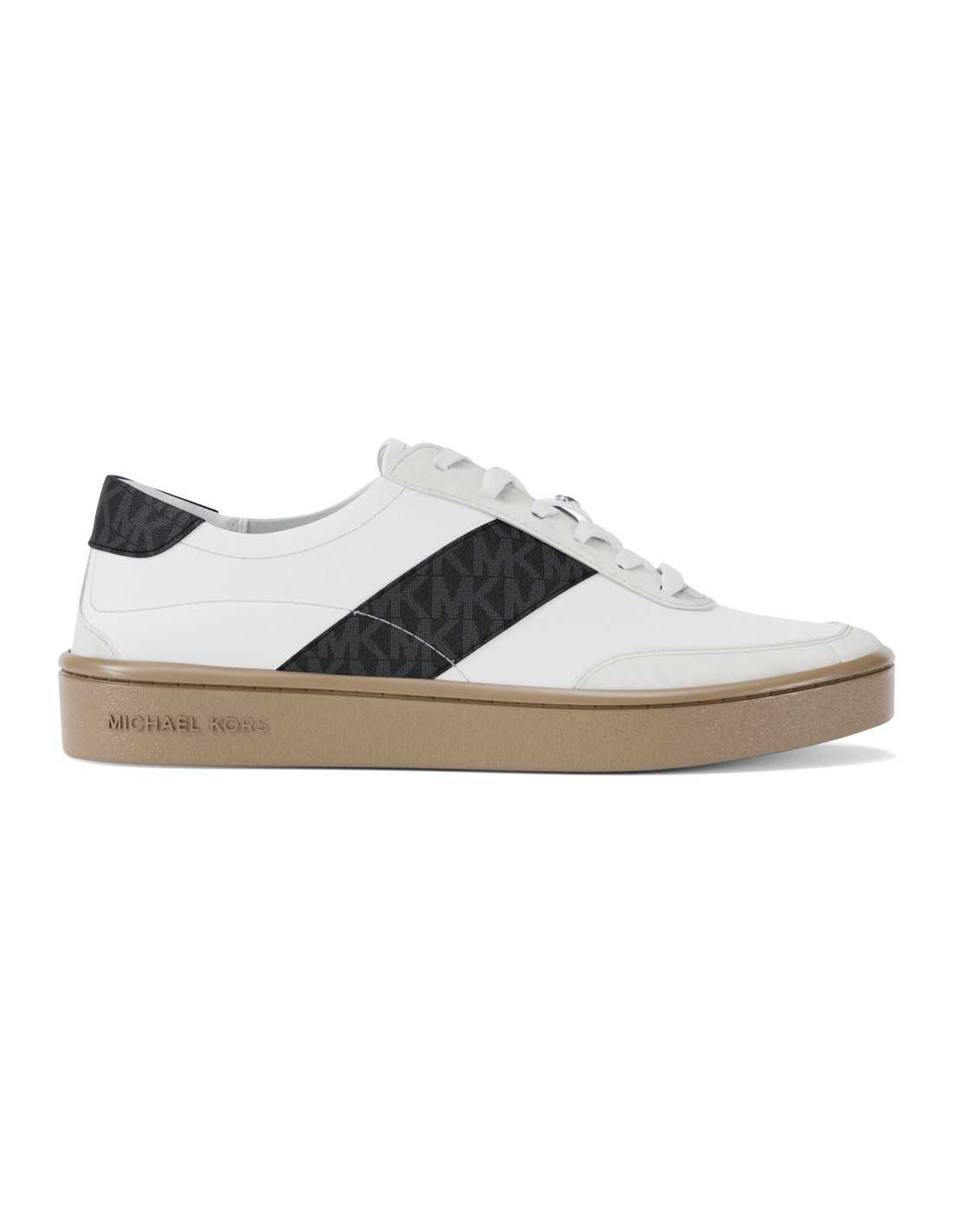 Sneakers Michael Kors della linea Kaycee in tela rivestita con stampa logo signature e dettagli in contrasto, modello stringato con suola in gomma.