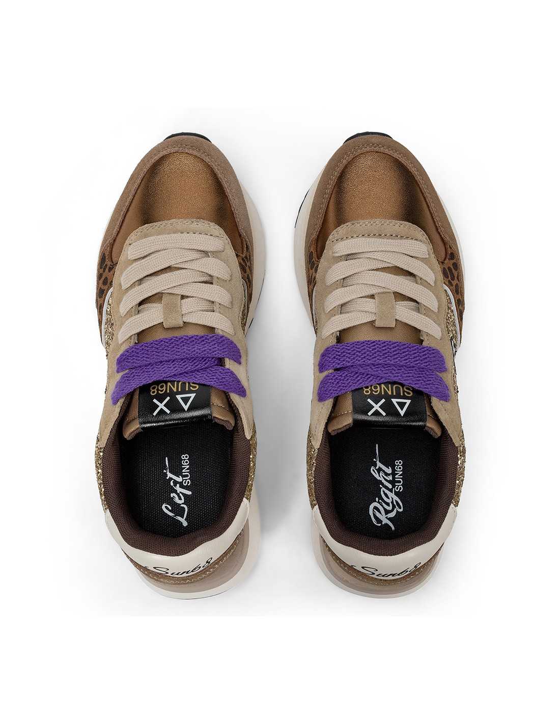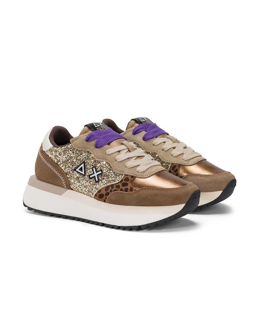 Sneakers Sun68 in pelle e tessuto della linea Ally Glitter con suola in gomma.
