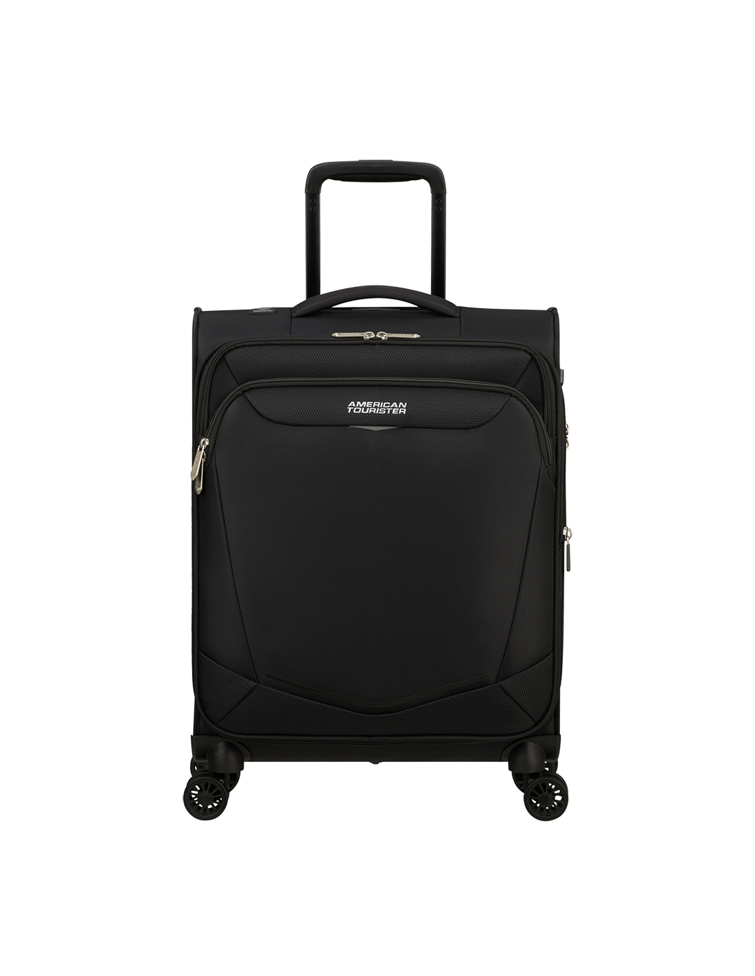 Trolley American Tourister morbido da cabina con 4 ruote piroettanti, tasca sul frontale e lucchetto TSA.