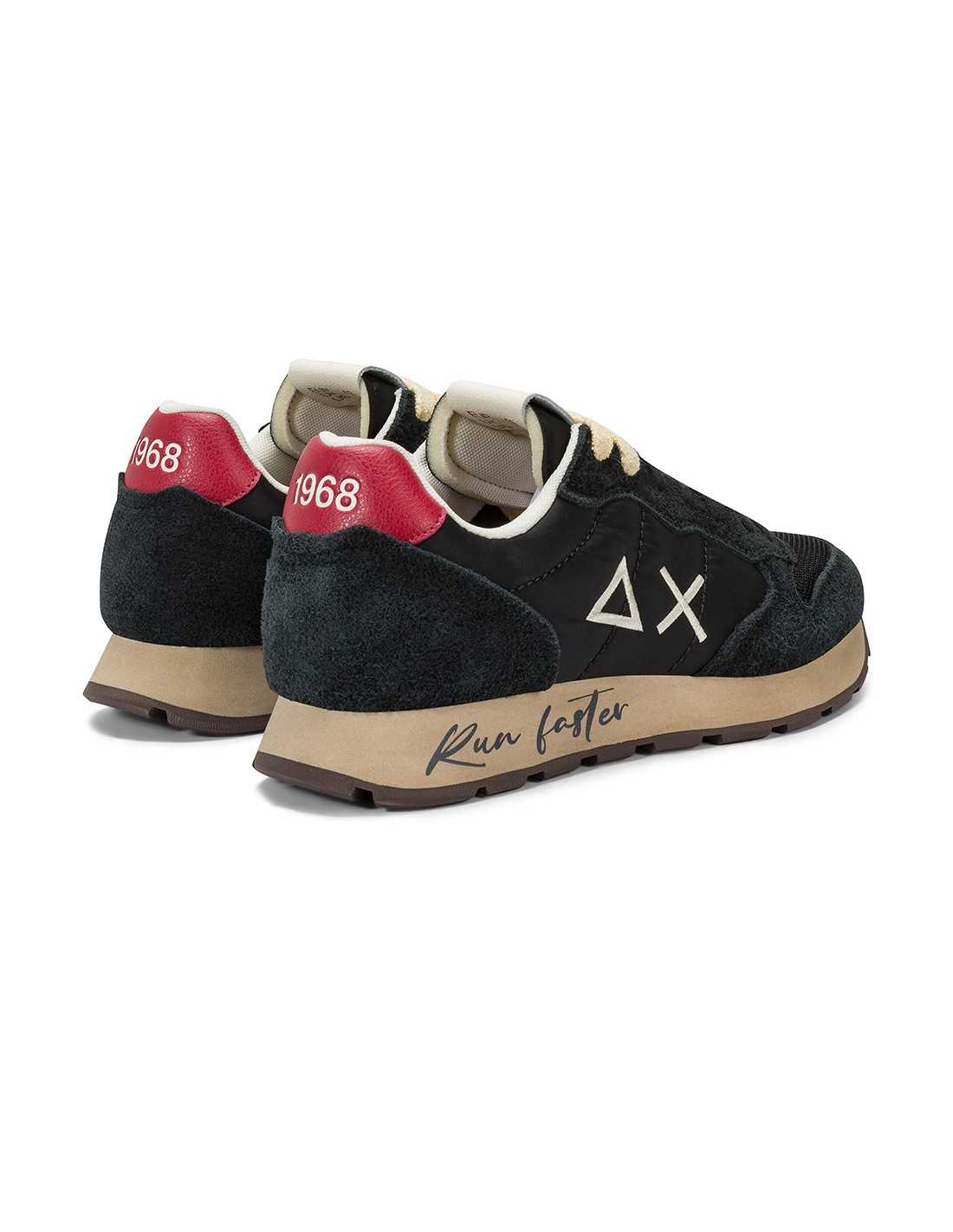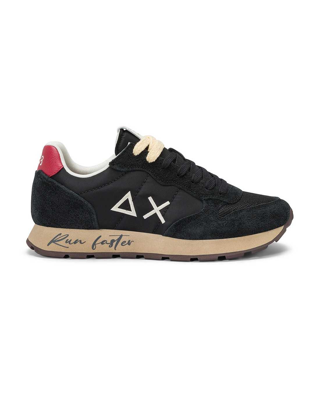 Sneakers Sun68 in tessuto e pelle della linea Tom Vintage con suola in gomma e dettaglio frase "Run faster".